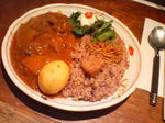 玄米+黒米ごはんに角煮大根カレーにしたのだけど、